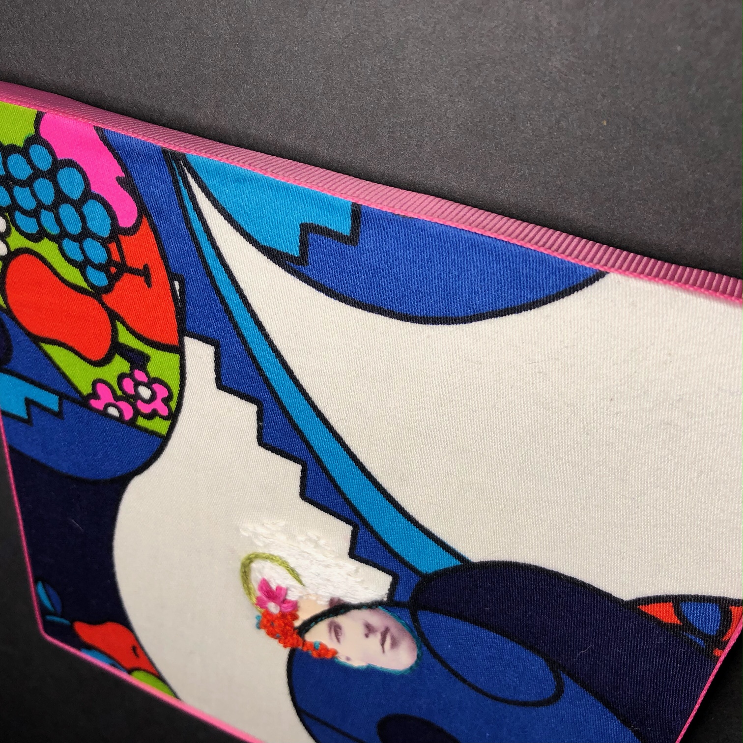 Over the years I’ve collected some pretty amazing original vintage screen printed fabrics from the 60’s and 70’s. I want to be able to showcase how awesome the fabrics are, so I’ve started an ongoing series- Each one will be a 6” square and feature stitch work to compliment the print (I’m gonna keep them accessible at a hundo or under, too). Each fabric will only be used once!✨