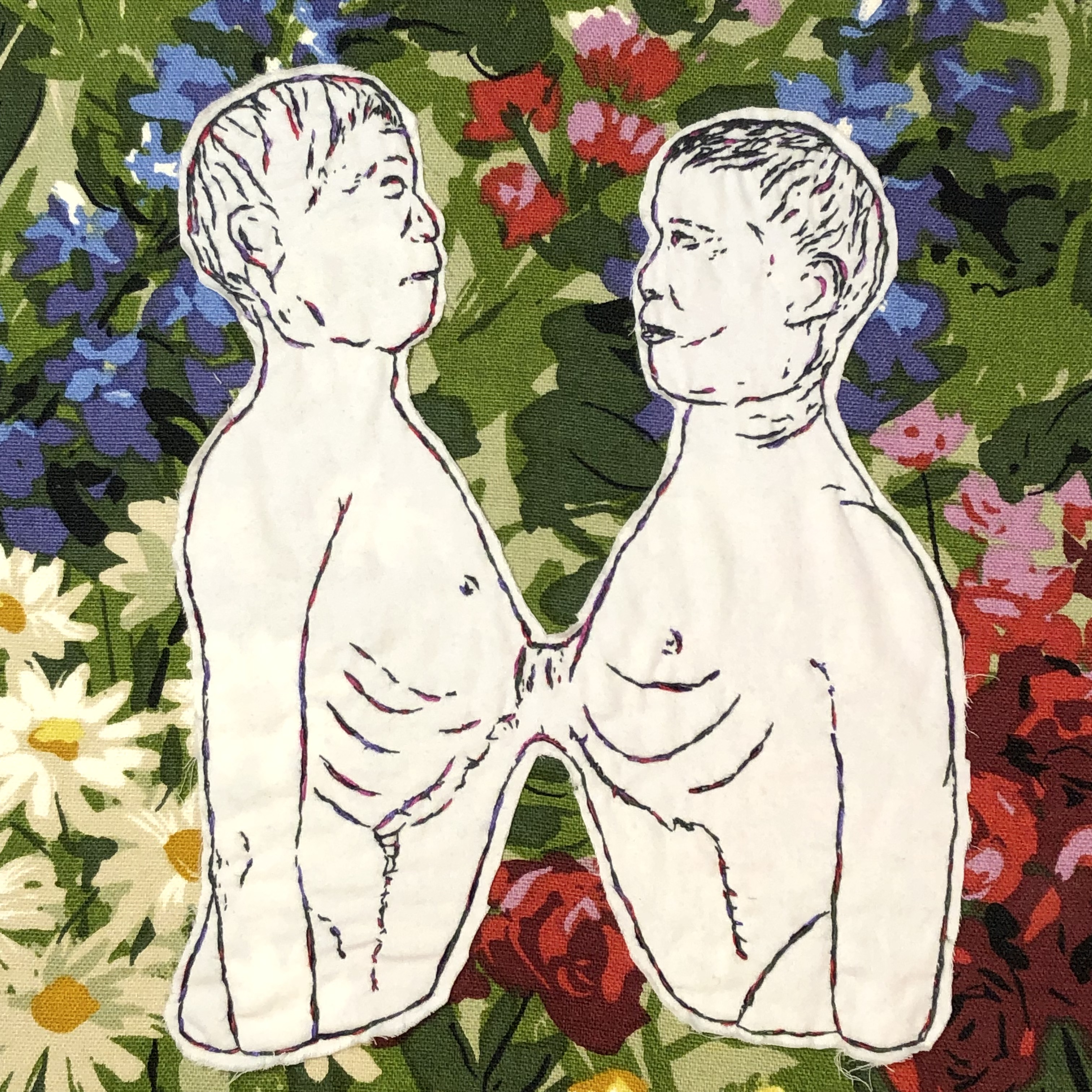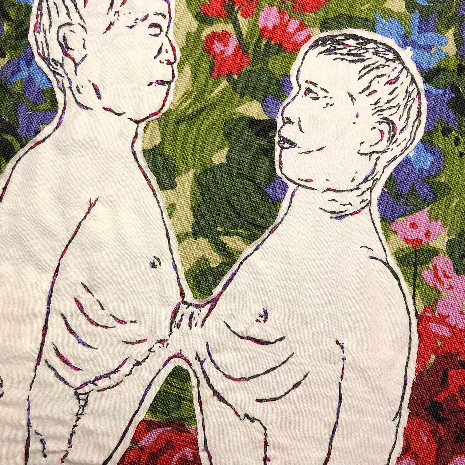 Hand embroidery on cotton muslin and backed with an original vintage Dupont screenprint.